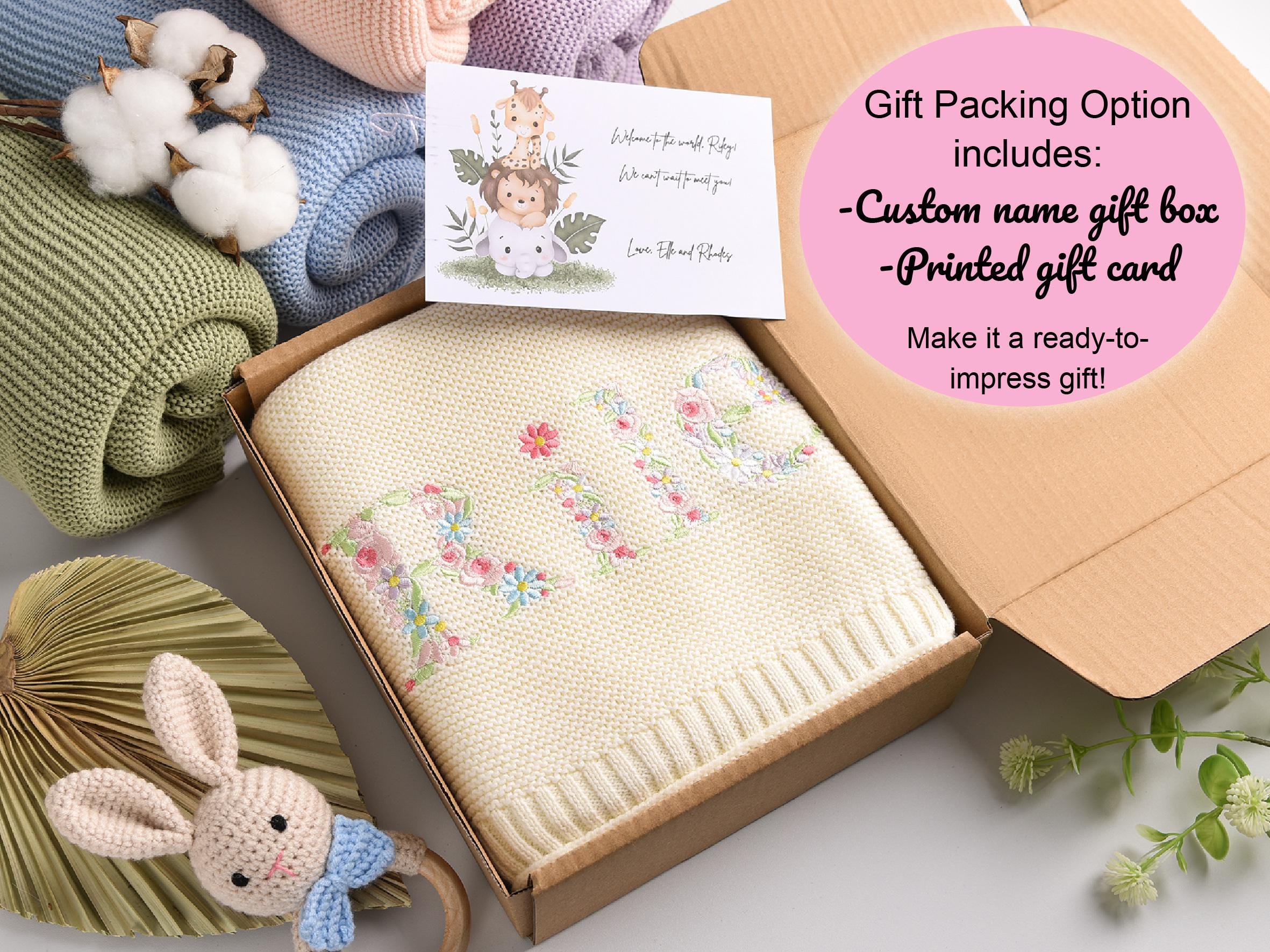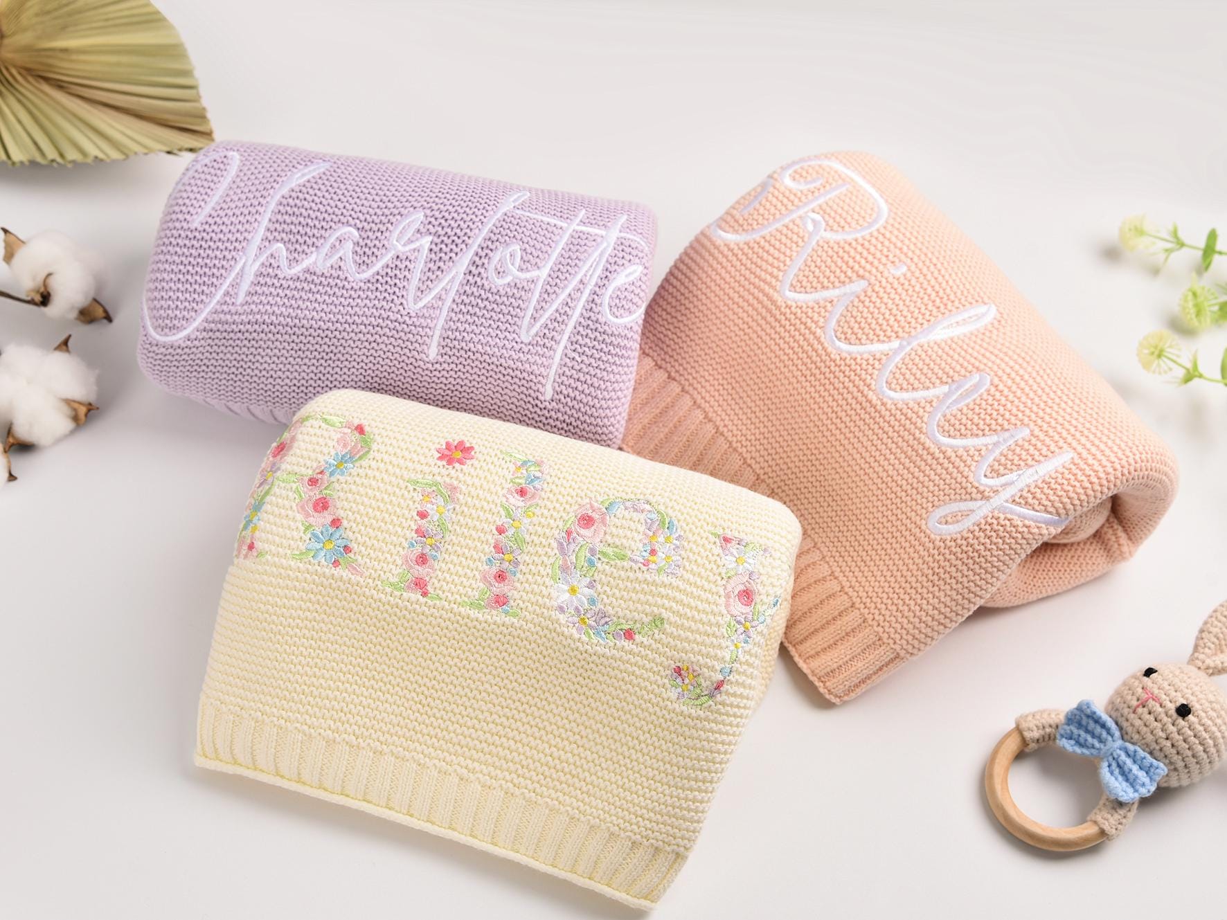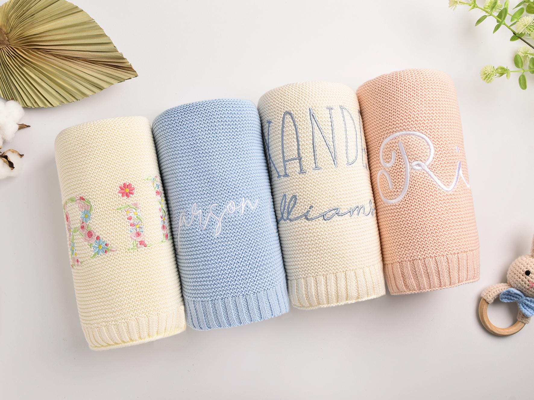 Wrap your little one in love with our Embroidered Baby Name Blanket! This soft cotton knit blanket is perfect for keeping babies cozy and warm while adding a personal touch.